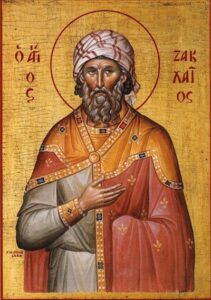 زکایوس در ابتدا باجگیر و گناهکار بود. هنگامی که خداوند ما او را بر درختی در اریحا دید و وارد خانهاش شد، زکایوس توبه کرد (لوقا ۱۹ :۱–۱۰). بعدها او از پطرس رسول پیروی کرد و از سوی او بهعنوان اسقف قیصریه در فلسطین منصوب شد، جایی که با وفاداری به انجیل خدمت کرد و در آرامش درگذشت.