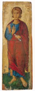 تیمون یکی از هفت شَمّاس و یکی از هفتاد رسول بود (اعمال ۶ :۵). او به عنوانِ اسقفِ بُسترا در عربستان منصوب شد. در آنجا او انجیل را موعظه کرد و بدرفتاریِ بسیاری را به دستِ بتپرستان تحمل نمود. او در آتش افکنده شد اما بیگزند ماند. او سرانجام، در حالی که مصلوب شده بود درگذشت، و به پادشاهیِ مسیح وارد شد.