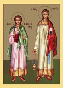 کالیوپیوس در پنجشنبهی مقدس مصلوب شد و مادرش زیر صلیب ایستاده، خدا را شکر میکرد. دو روز بعد، وقتی جسد او را پایین آوردند، مادرش بر بدن او افتاد و همانجا جان داد. بدینگونه، این دو با هم به حضور پادشاه جلال رفتند. آنان در سال ۳۰۴ میلادی به شهادت رسیدند.